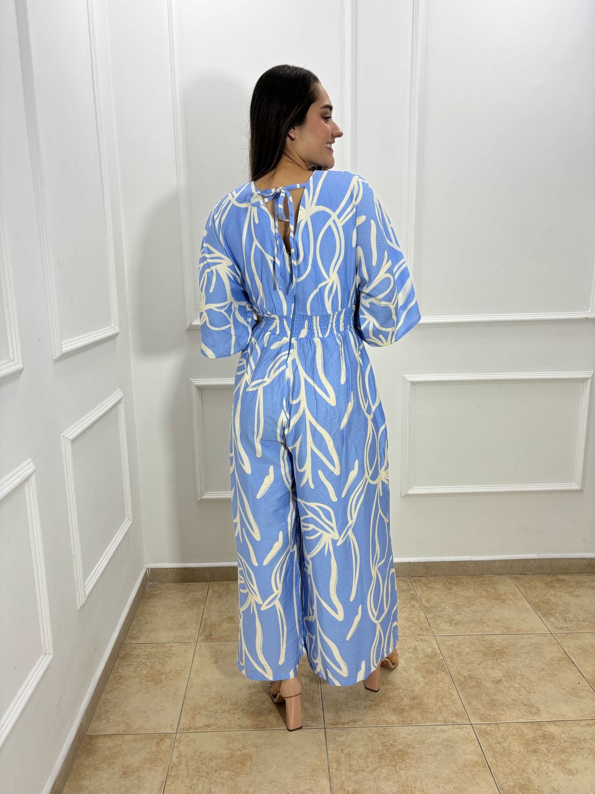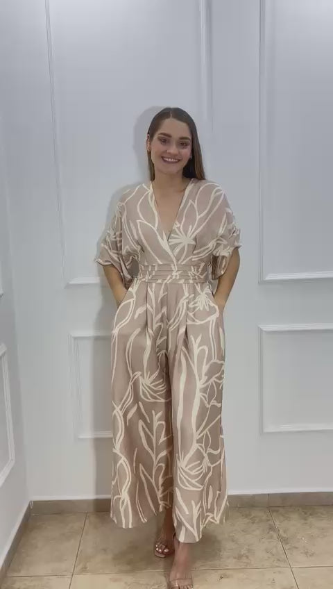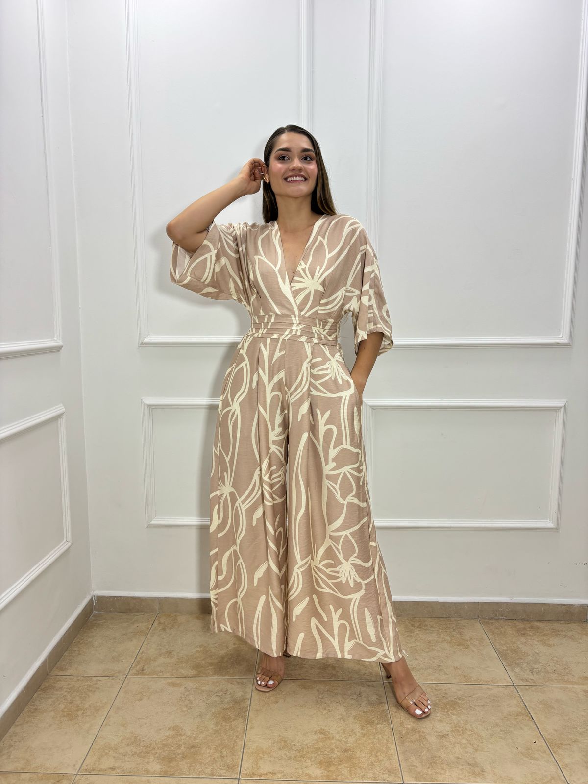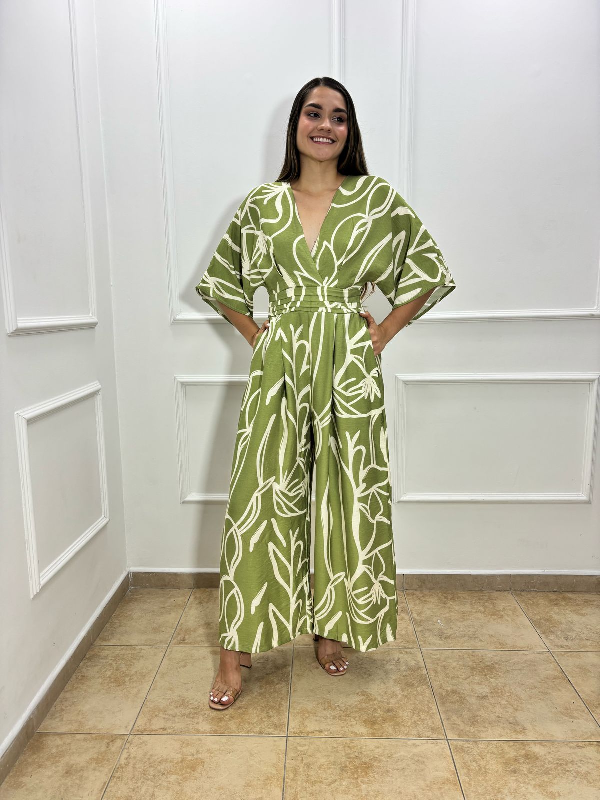 Enterizo estampado manga japonesa, silueta amplia, en lino, fresco, comodo y elegante.