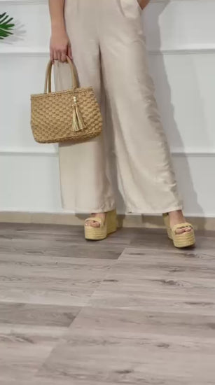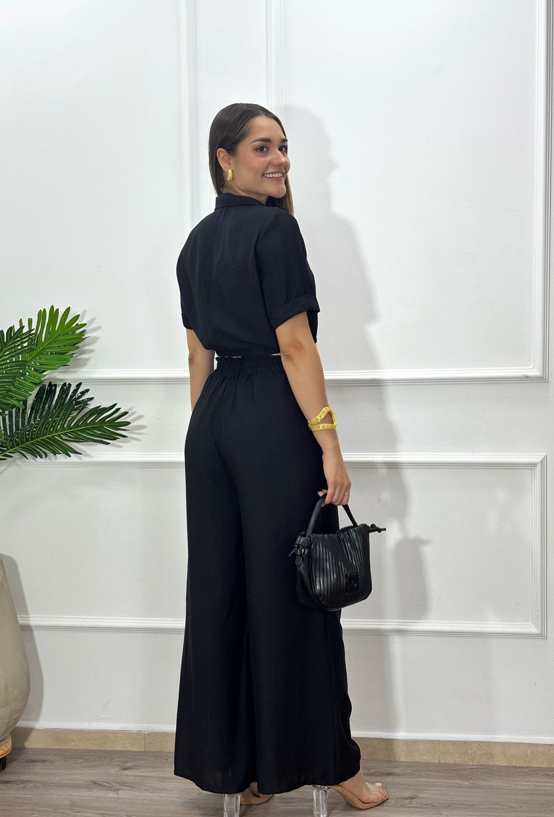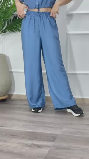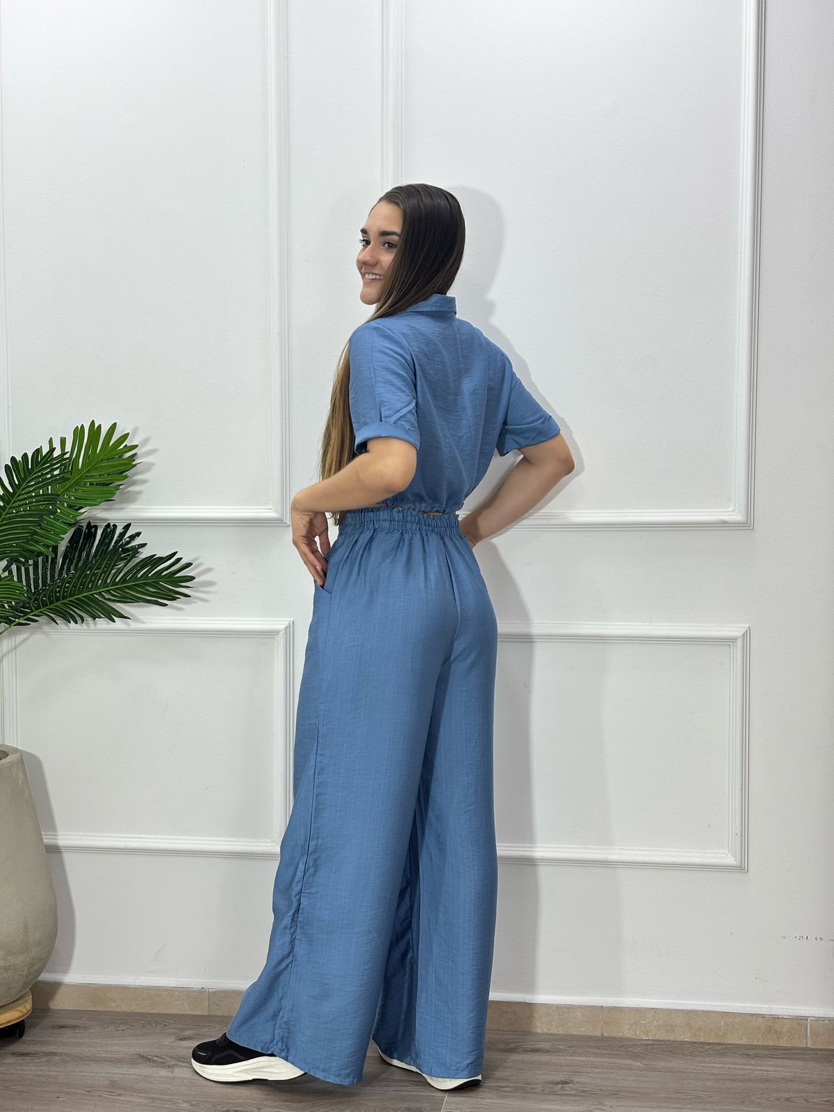 Set lino; blusa crop con elástico en cintura y pantalón con resorte, perfecto para amoldar y ajustar en cintura, super fresco y versátil.
