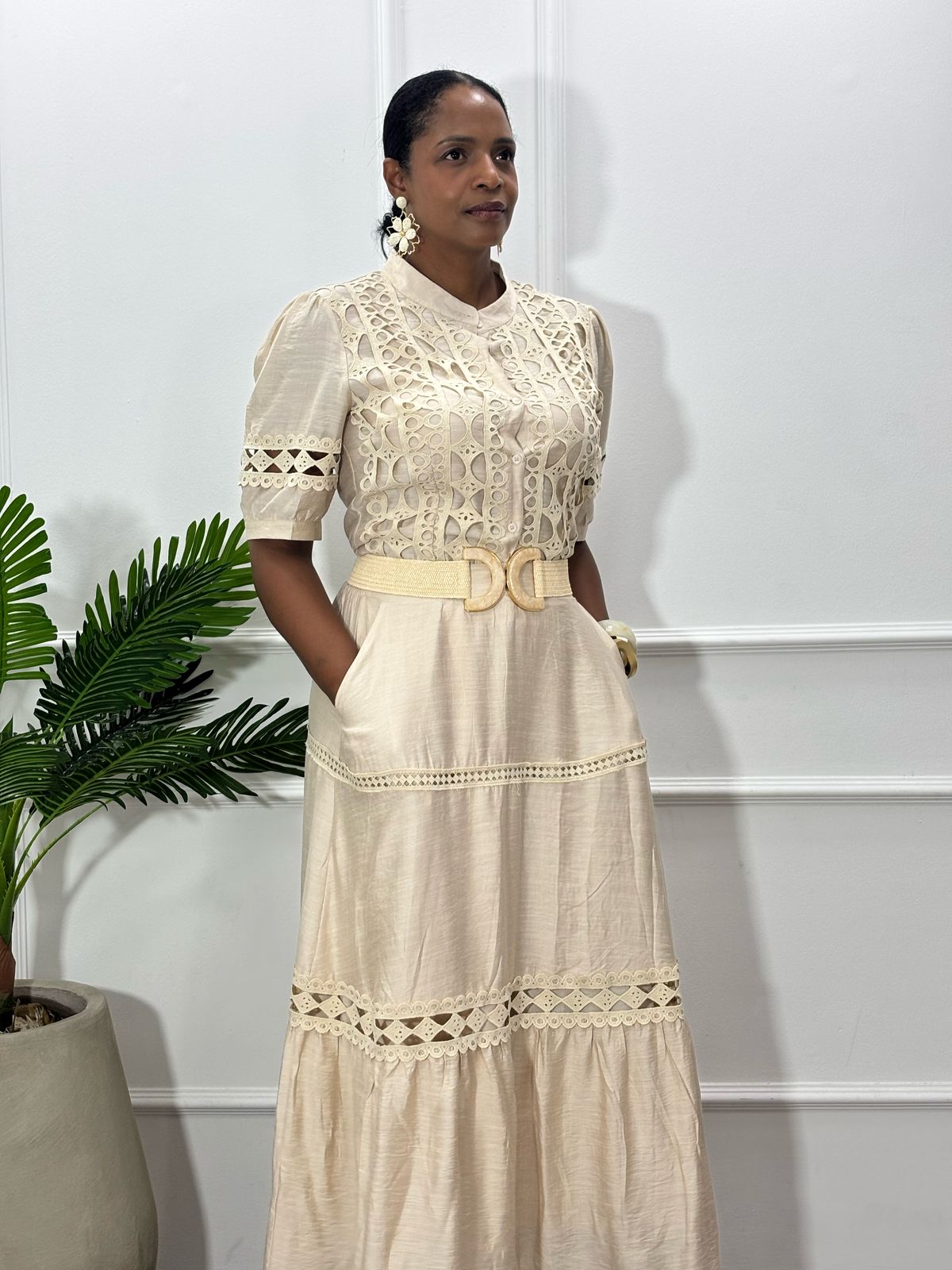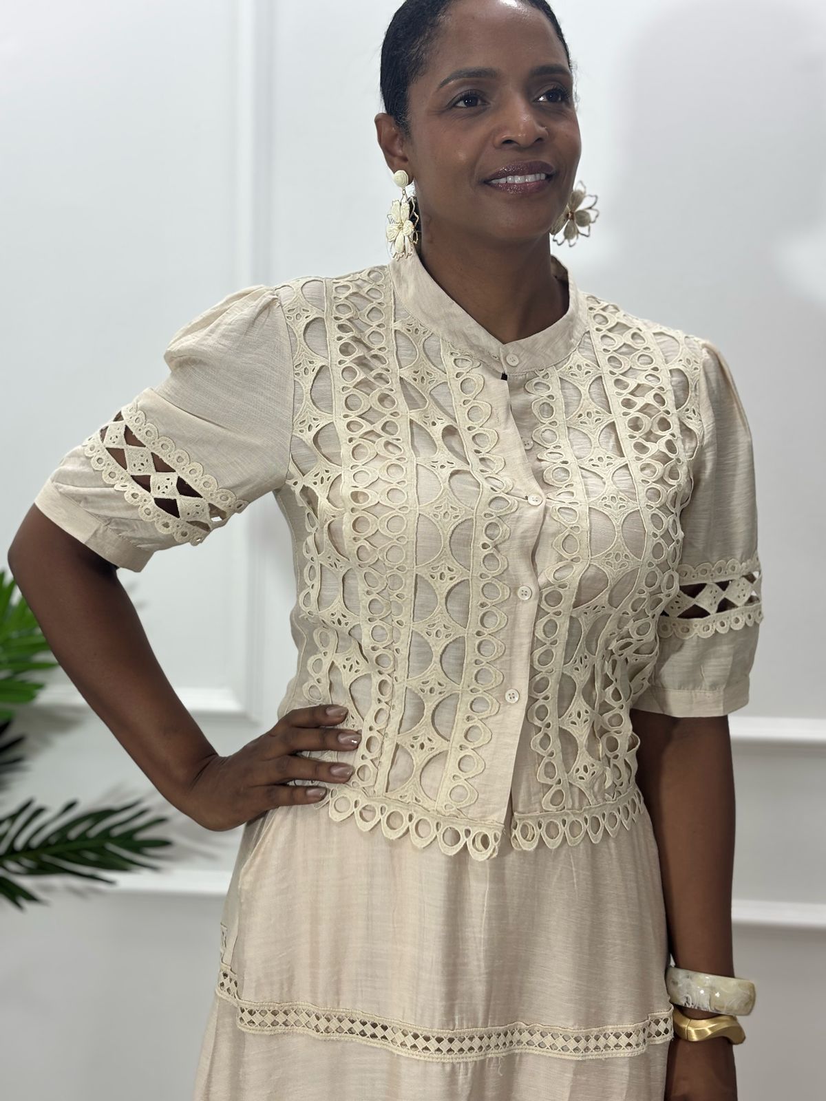 Set de falda y blusa en encaje con lino, un set perfecto para climas cálidos! luce espectacular, pero MUY FRESCA.
